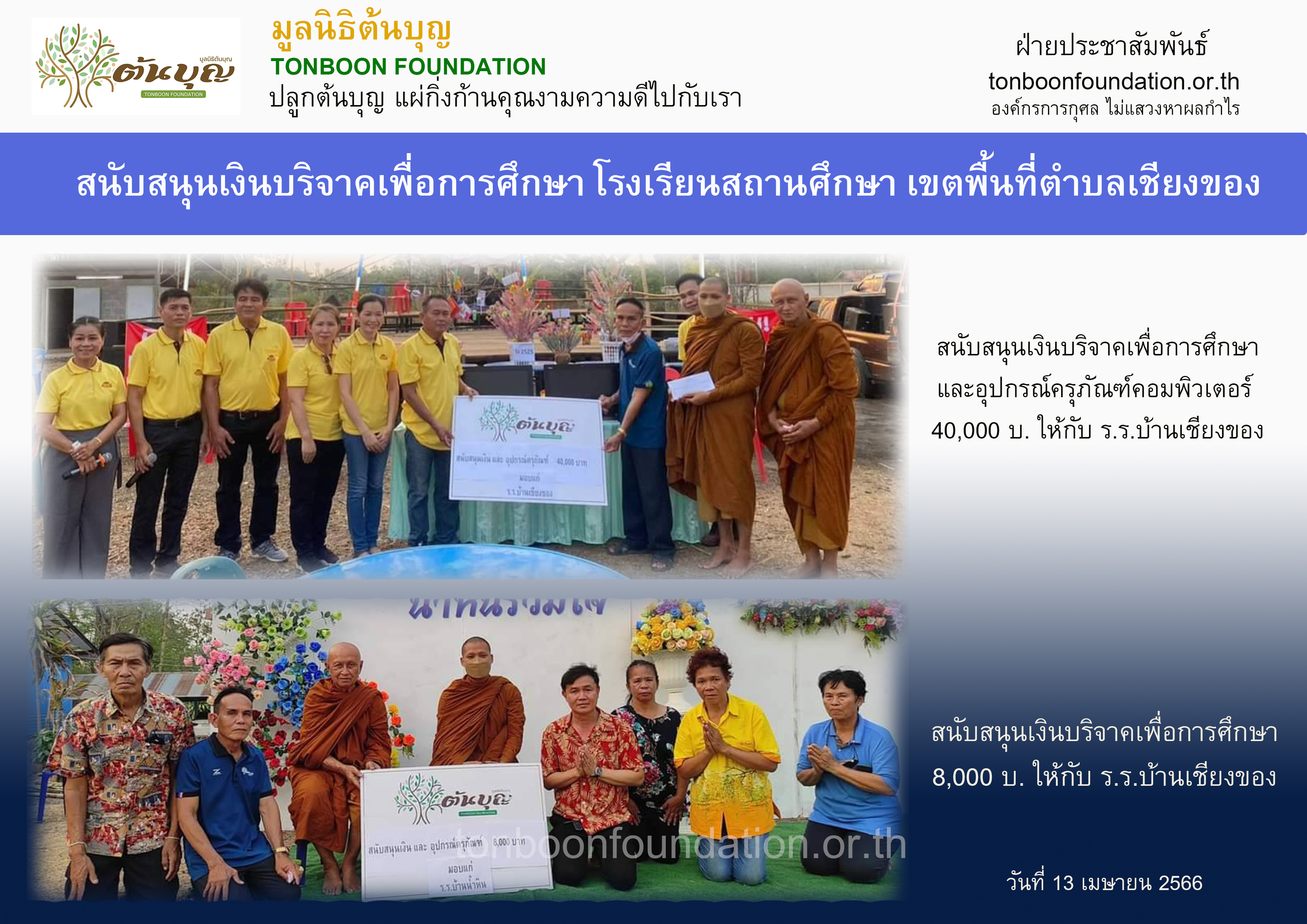 สนับสนุนเงินบริจาคเพื่อการศึกษา โรงเรียนสถานศึกษา เขตพื้นที่ ต.เชียงของ